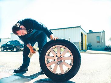 A special team will remove tire/rims from vehicle and operate accordingly.
